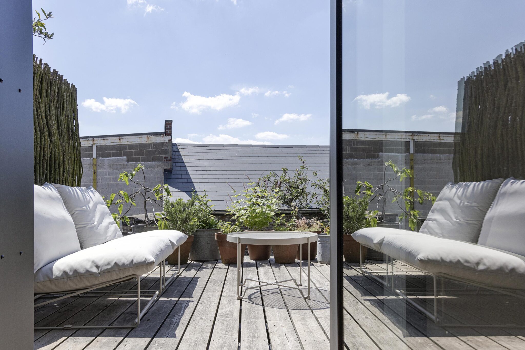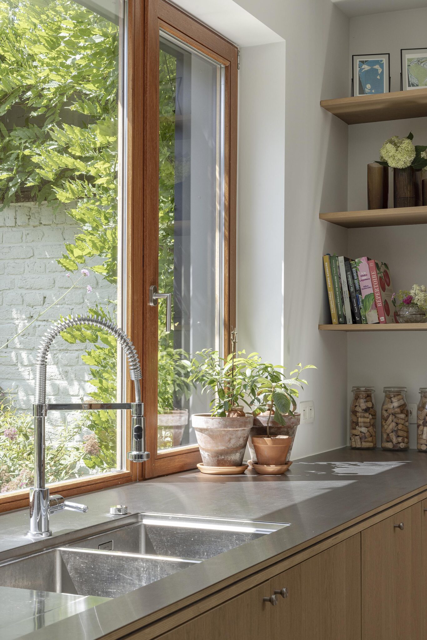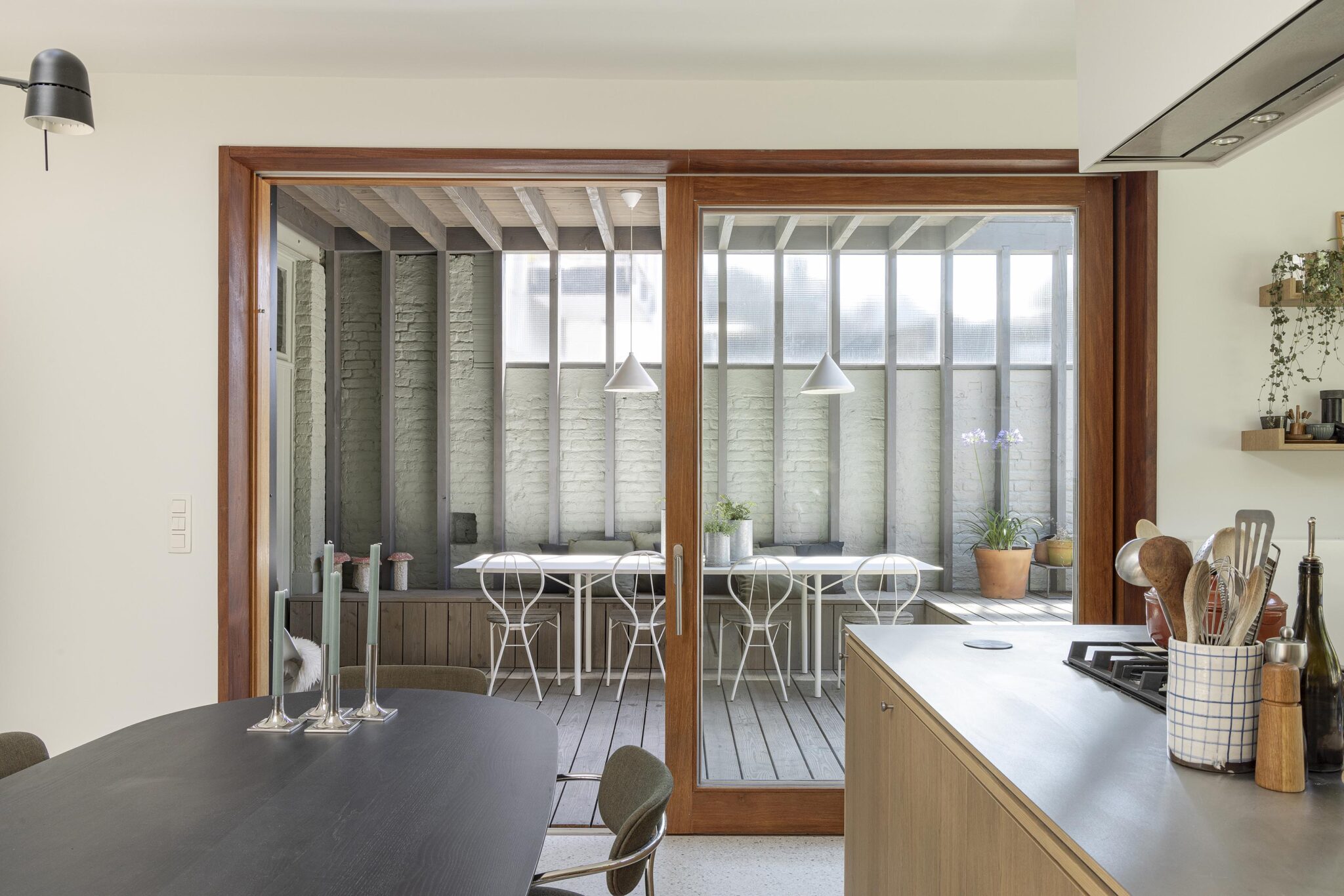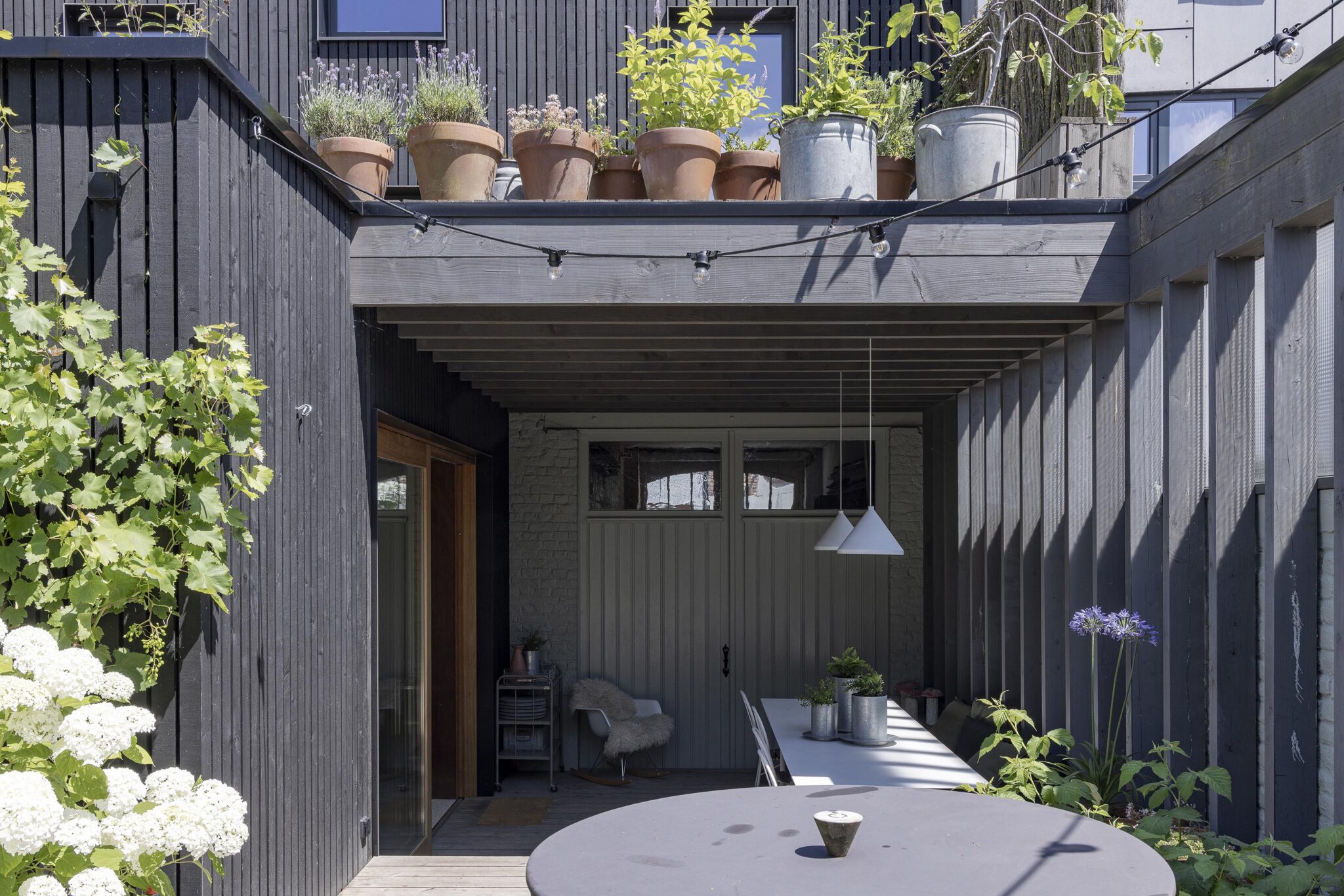 La petite cour, très végétalisée ainsi que la terrasse couverte ont été pensées pour créer un cocon de verdure en pleine ville.