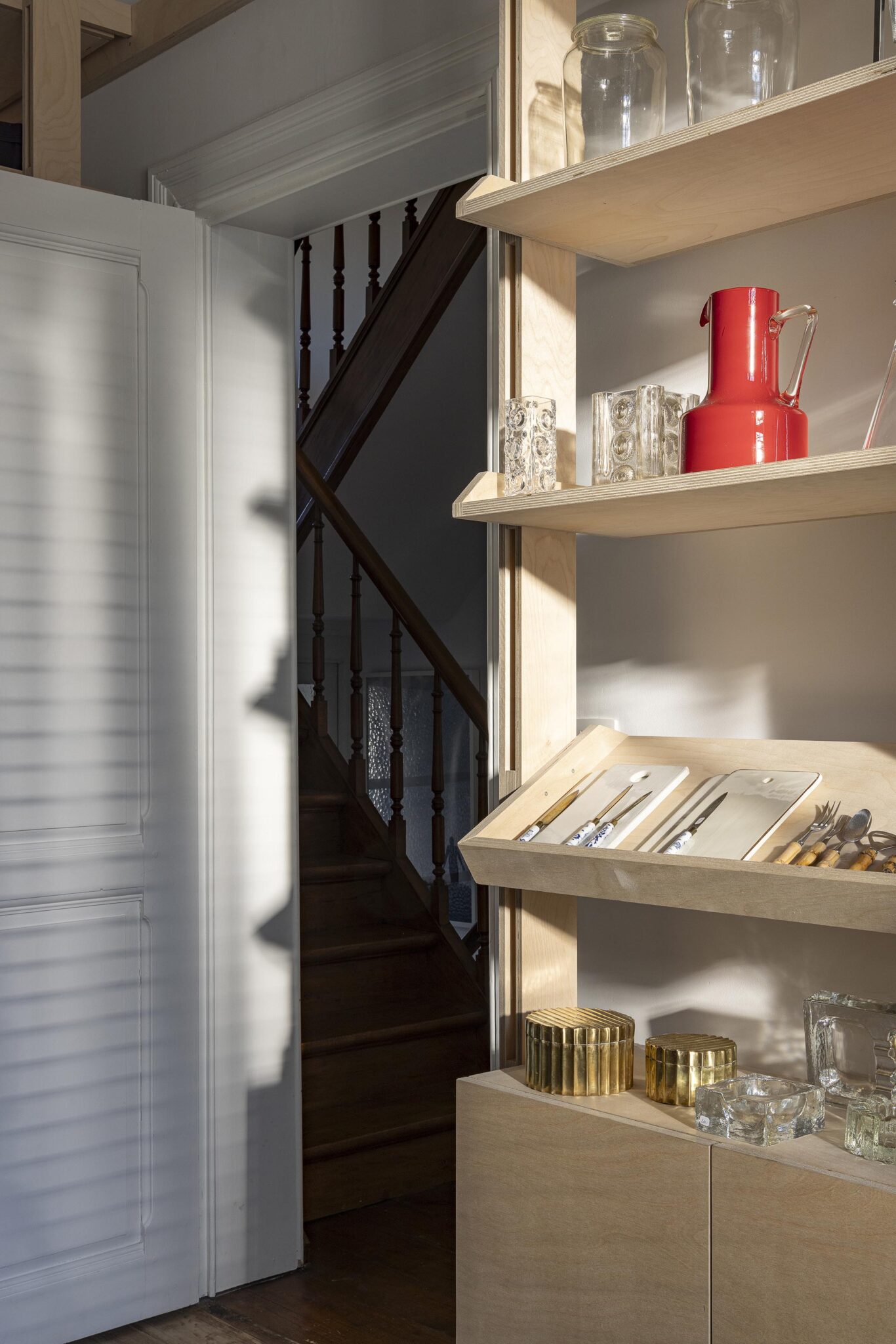 Un maximum d’éléments existants a été conservé : portes, escalier, parquets, disposition des pièces, etc.