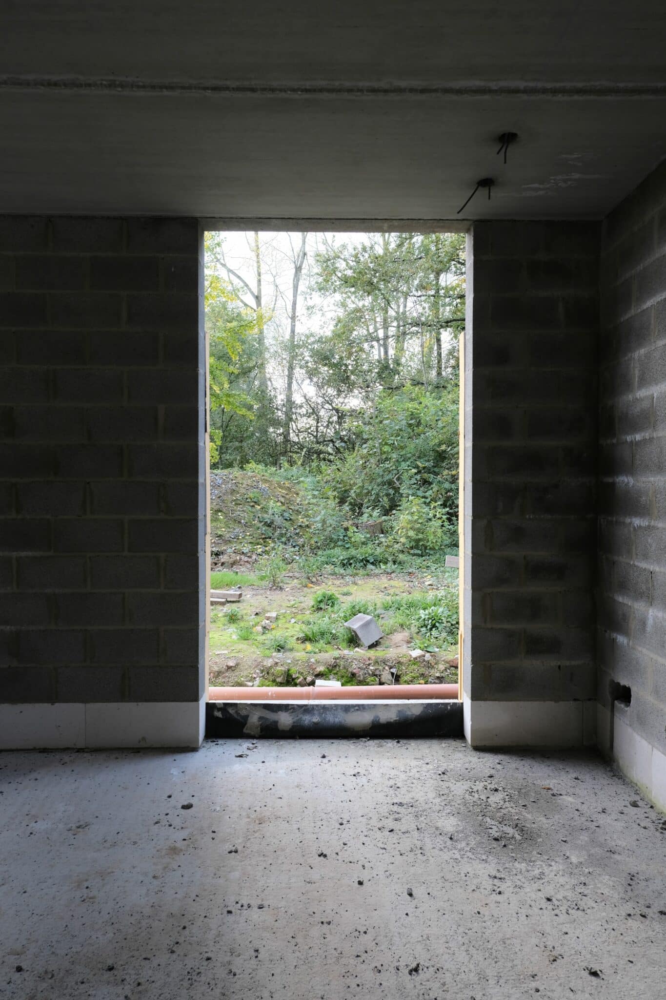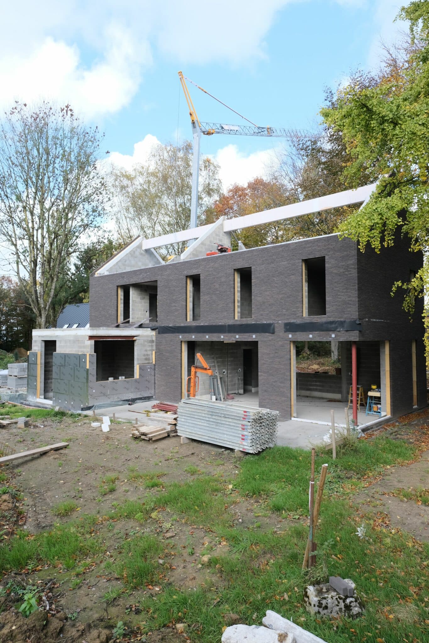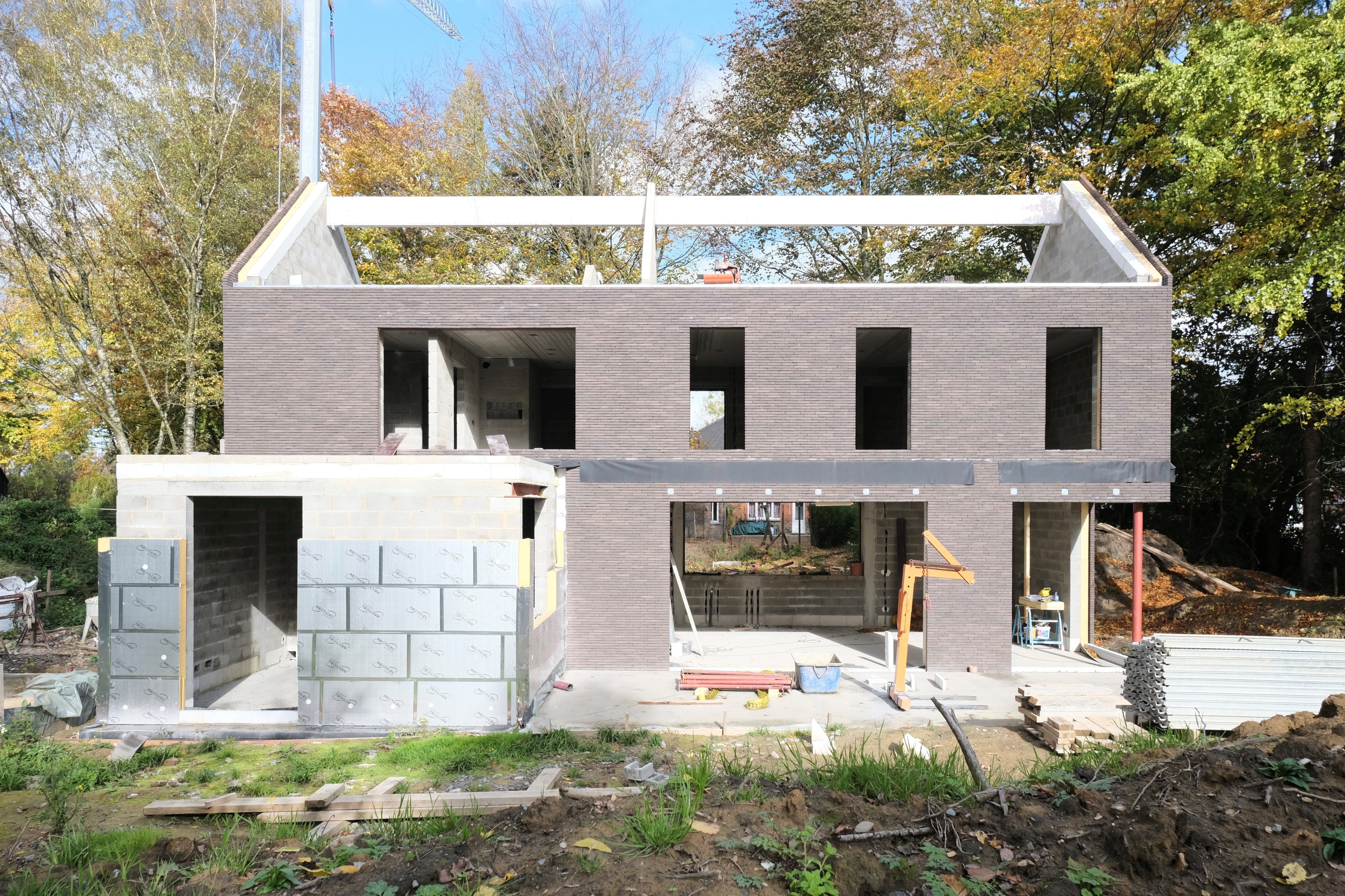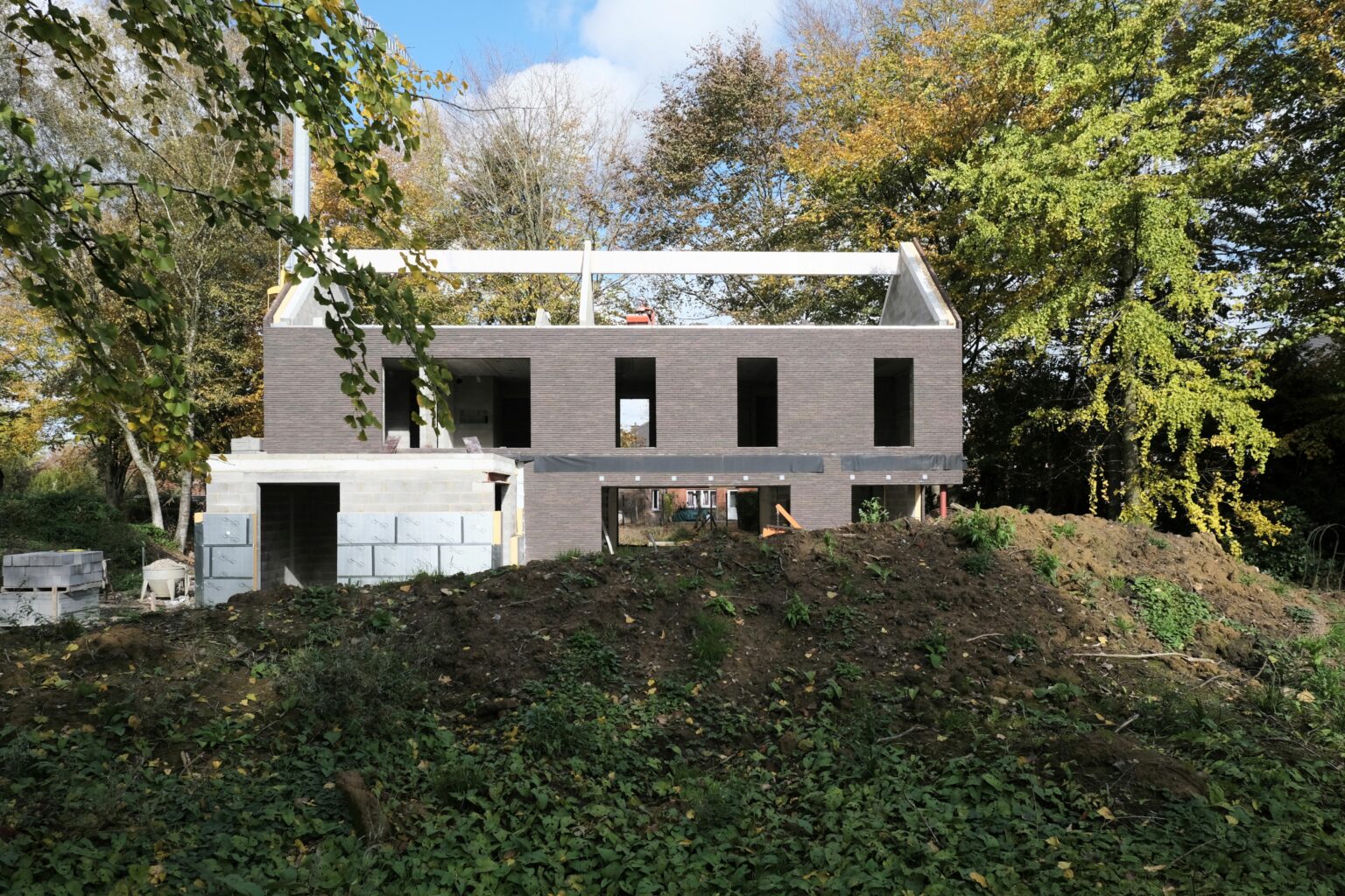 L’habitation s’implante dans un espace boisé, à proximité du centre de Herve.