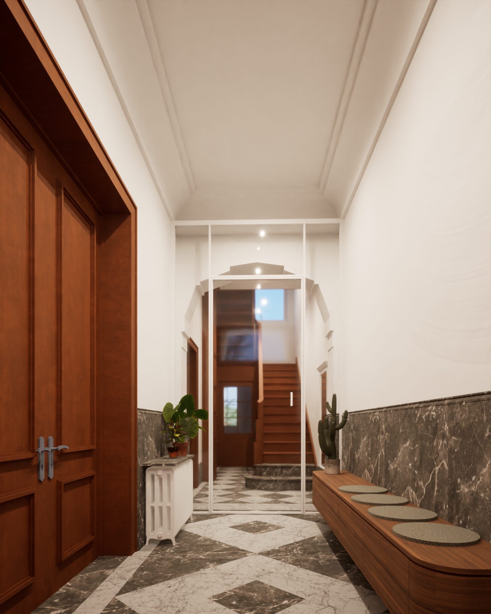 Le projet concerne la rénovation complète d’une maison de maître mitoyenne.