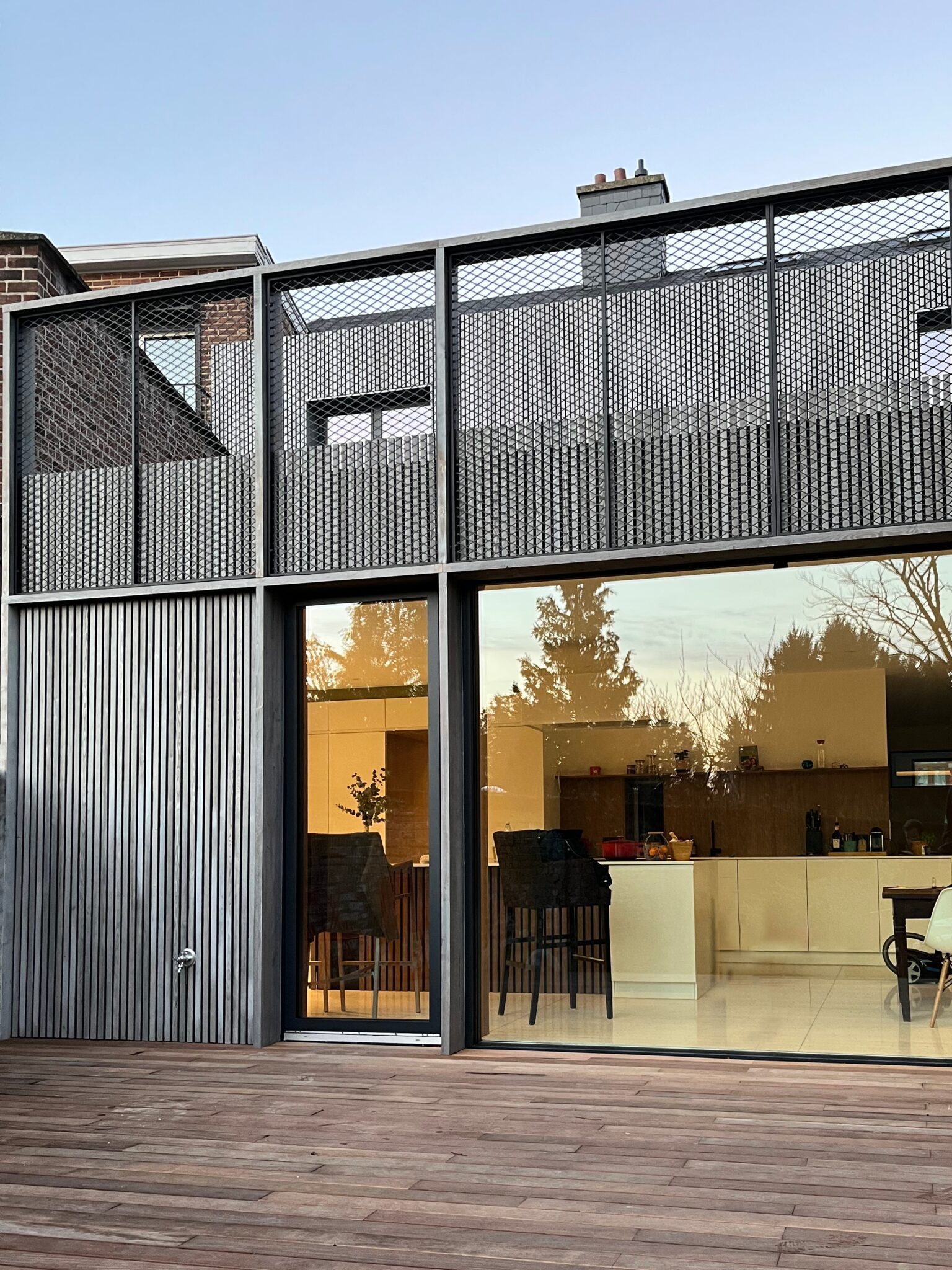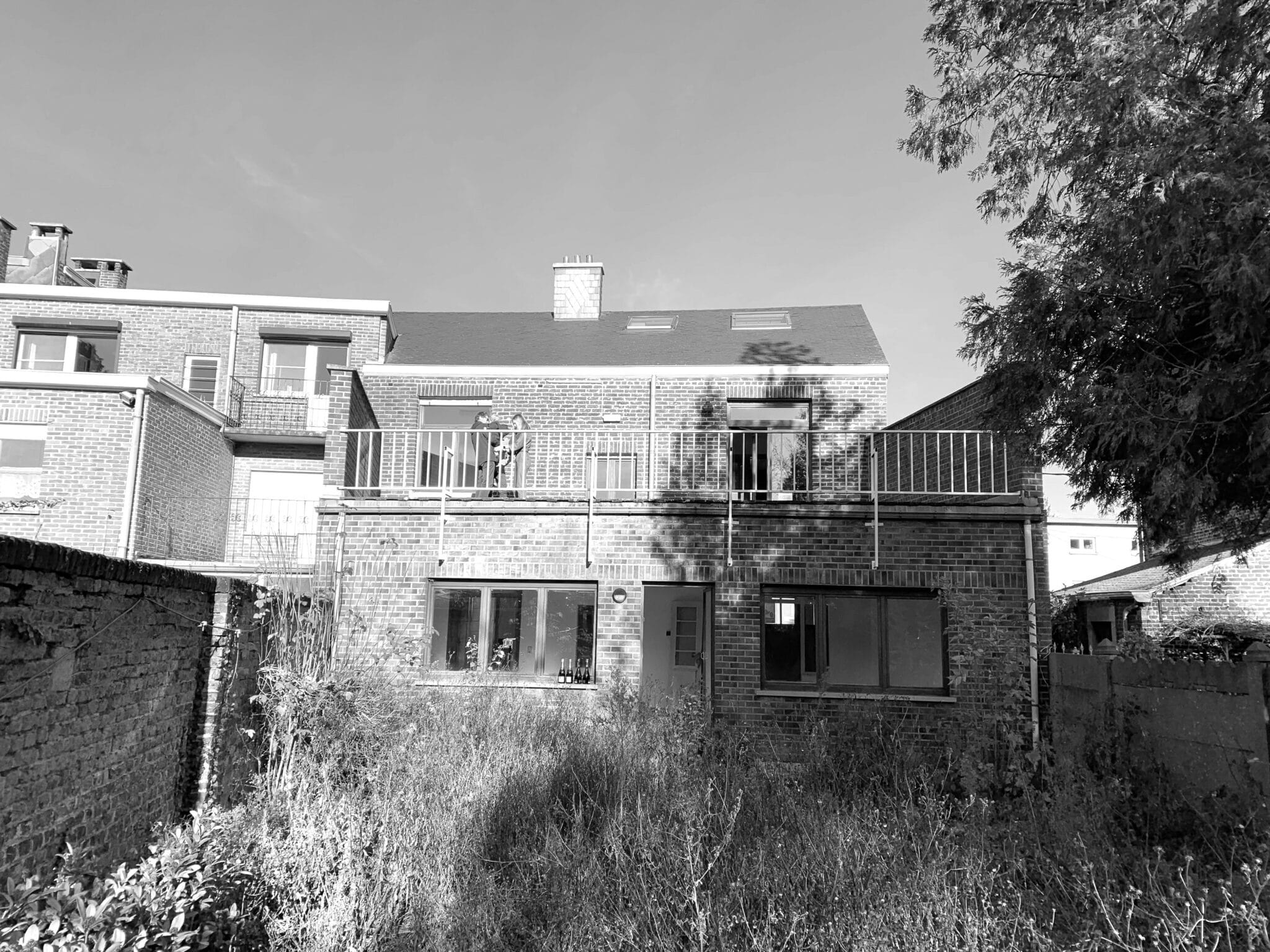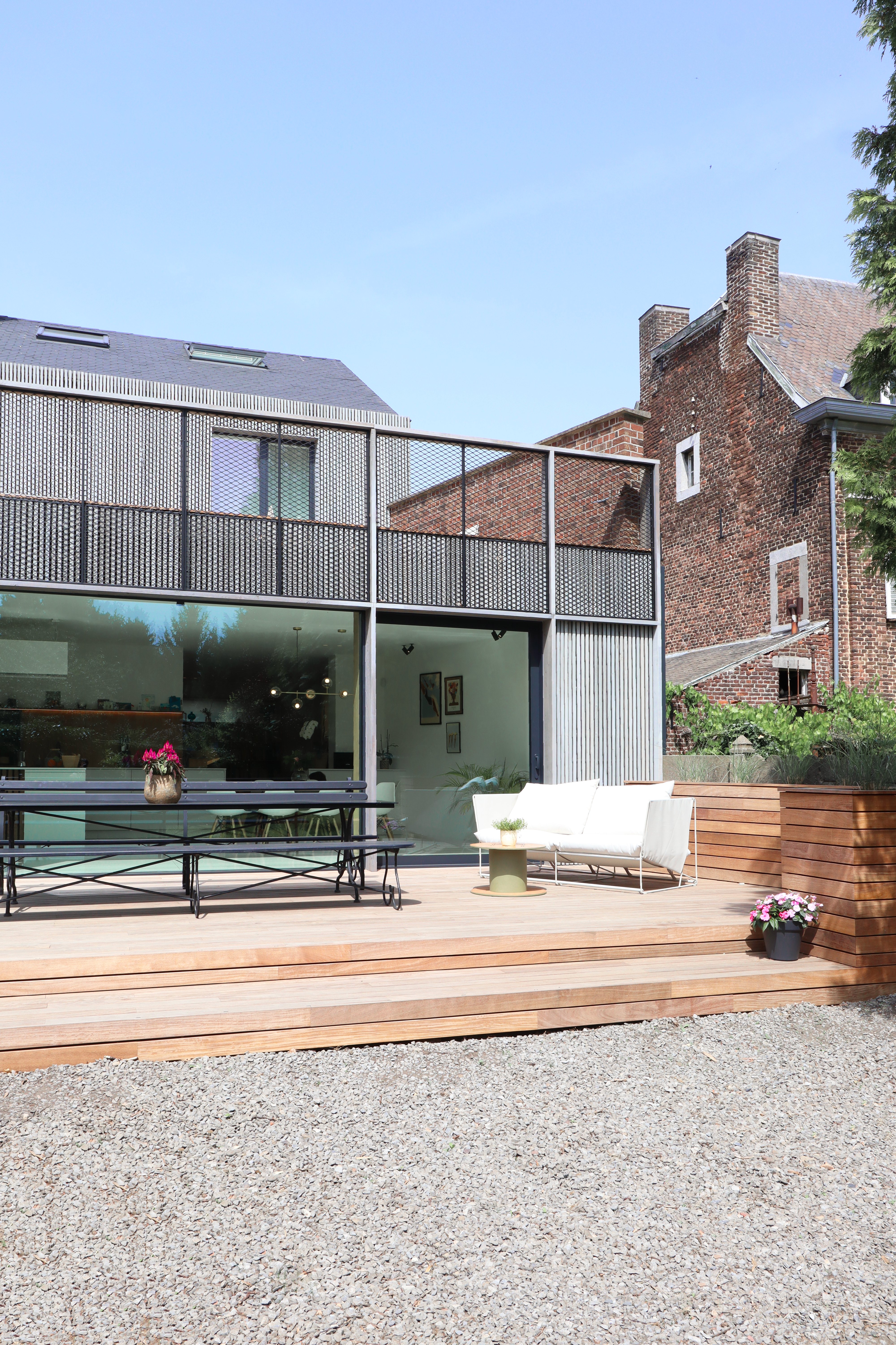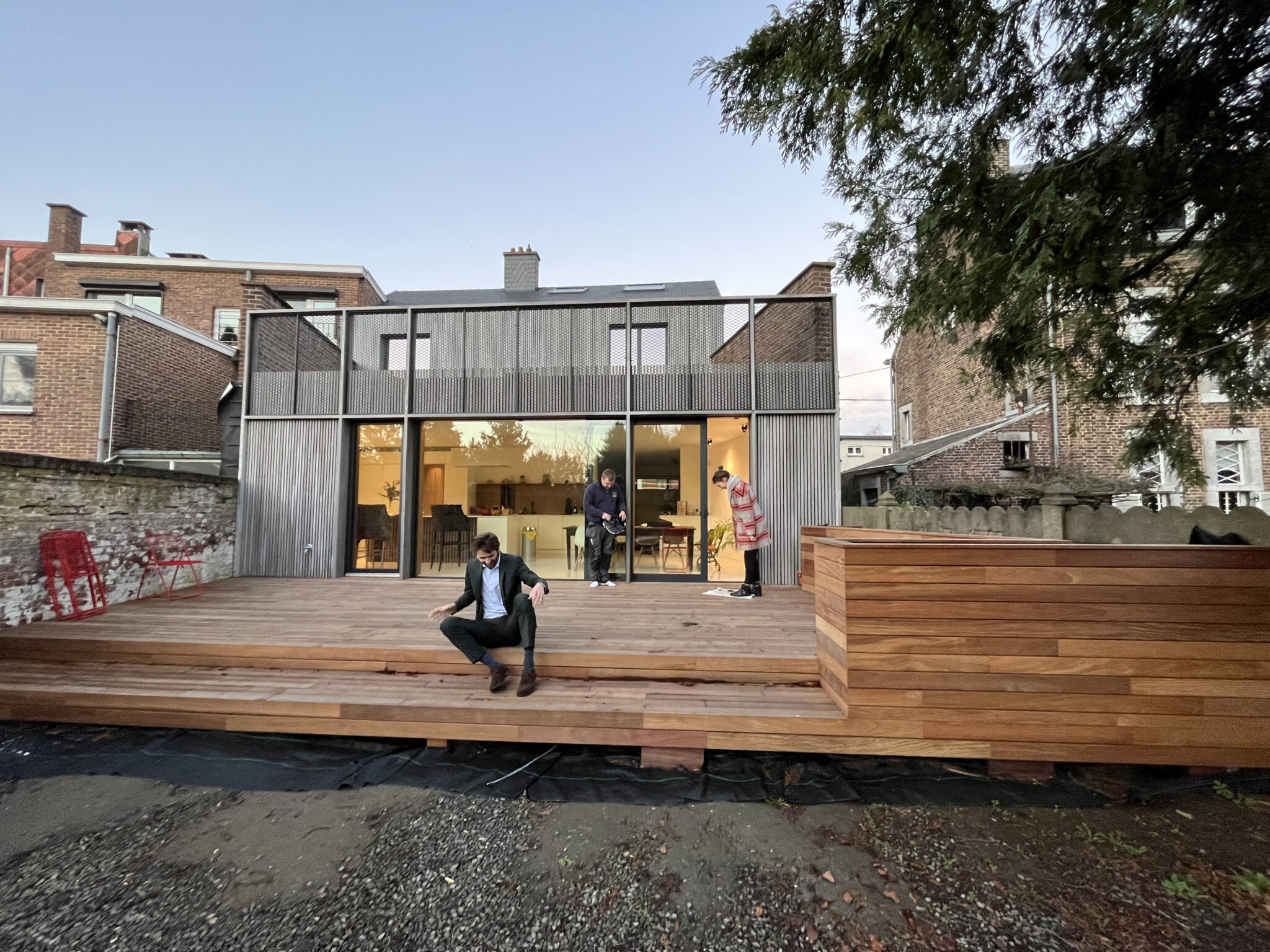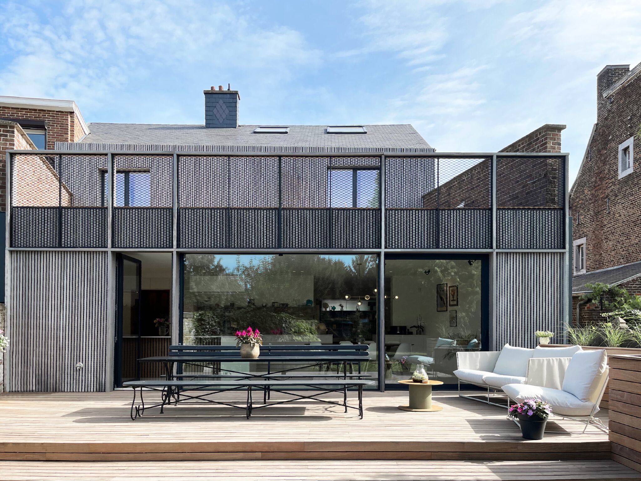 Le volume annexe arrière ainsi que la façade arrière ont, quant à eux, fait l’objet d’une transformation plus profonde, avec une isolation complète et une nouvelle expression architecturale.