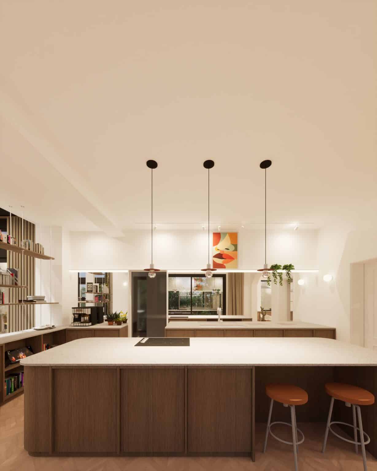 Les espaces de séjour sont repensés pour offrir une plus grande ouverture, tant entre les pièces qu’en direction du jardin.