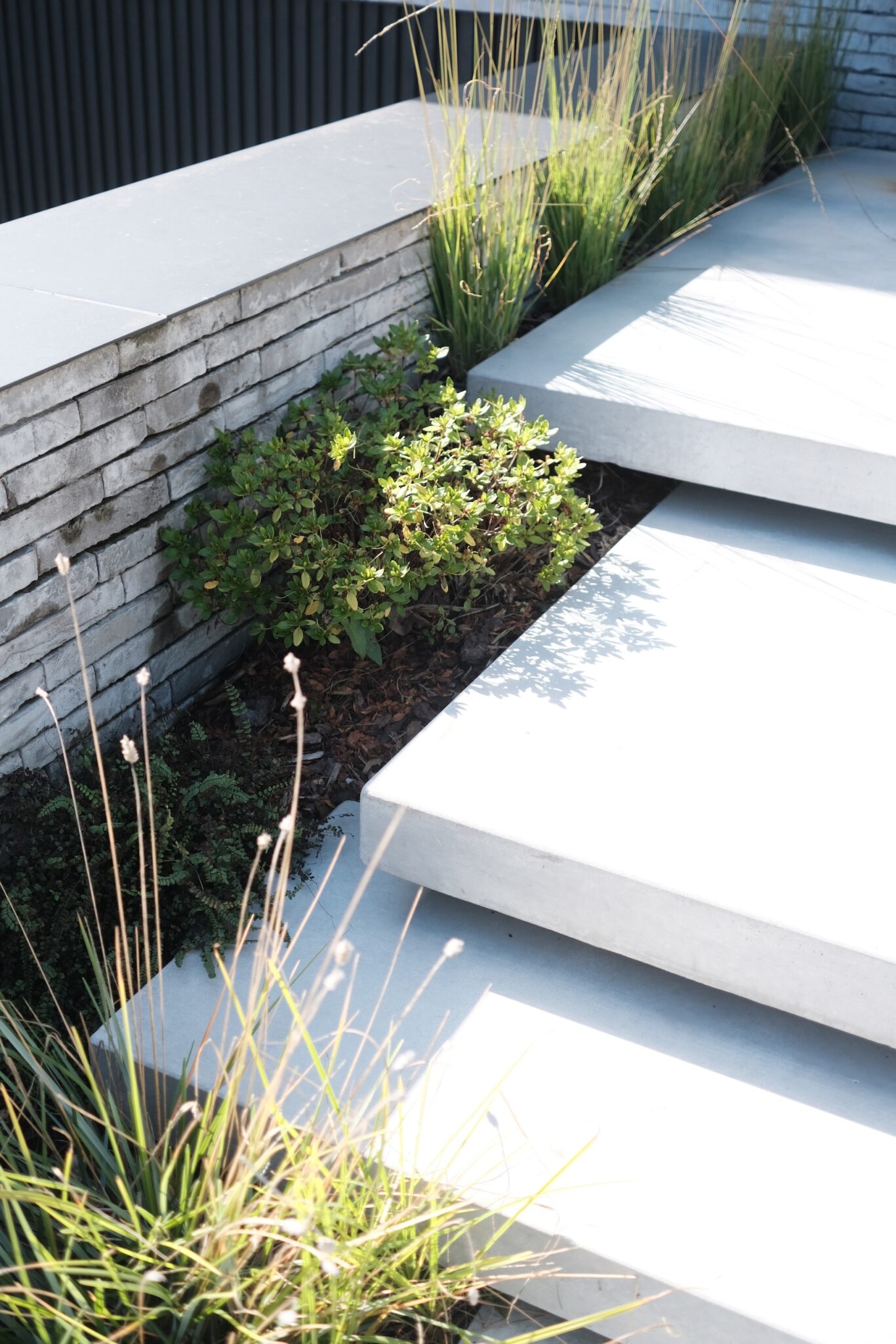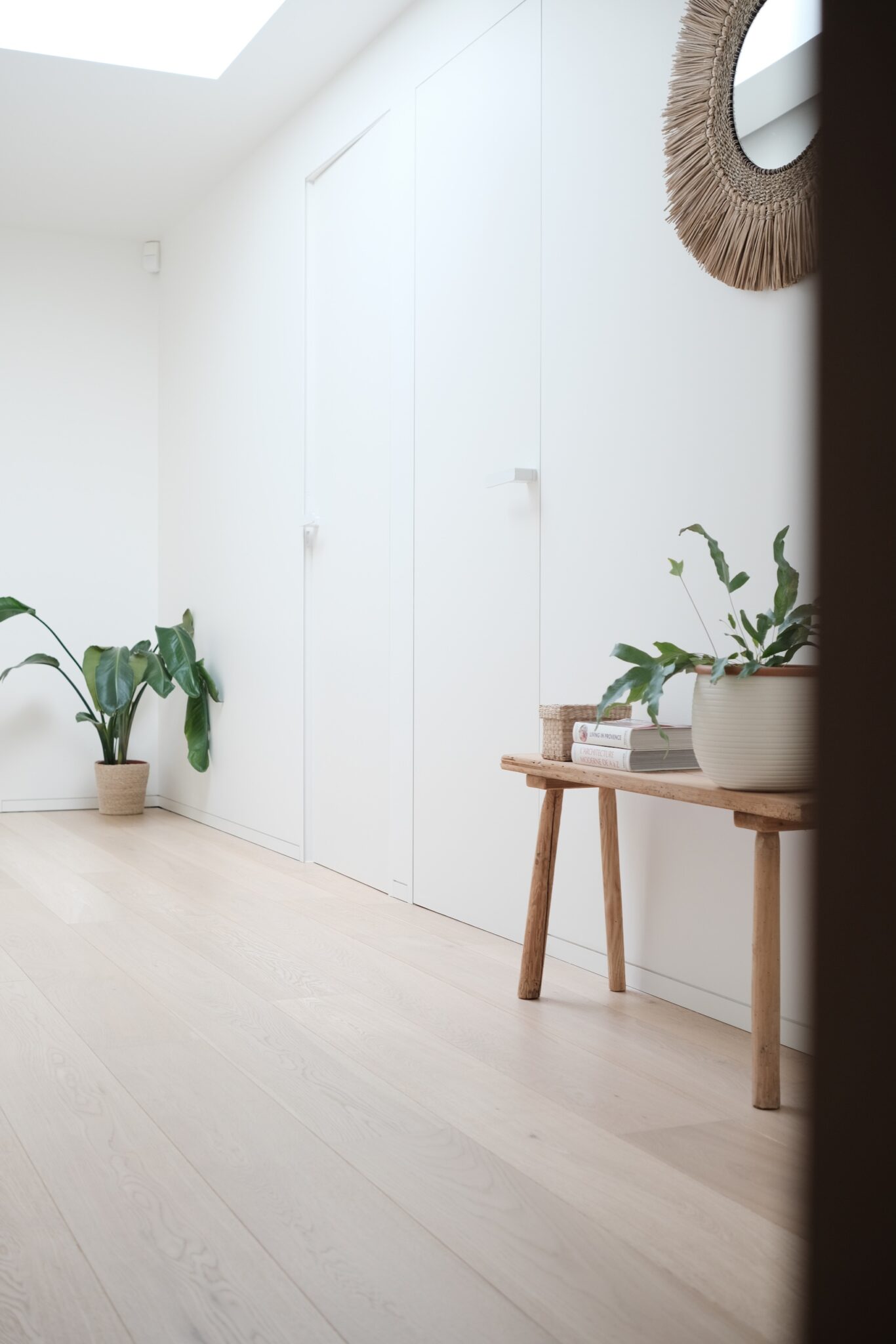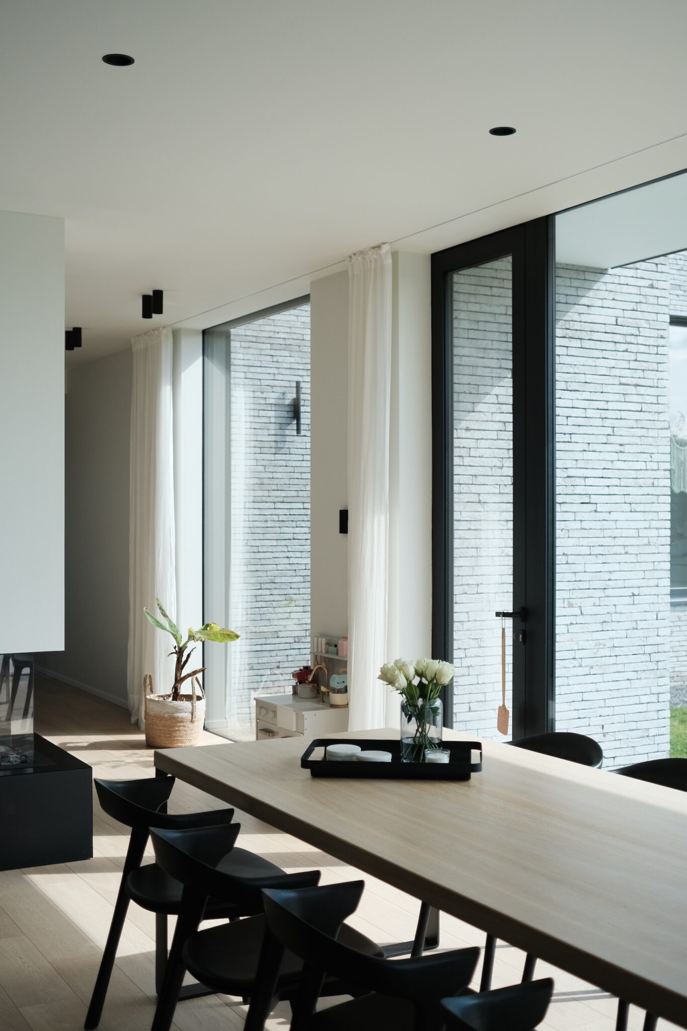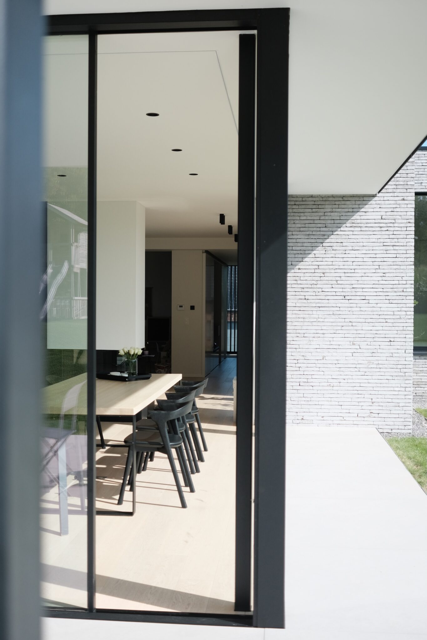 Le niveau de nuit prend place au-dessus de ce volume, tandis qu’un jeu de demi-niveaux permet d’implanter le niveau de vie à côté, en lien direct avec le jardin.