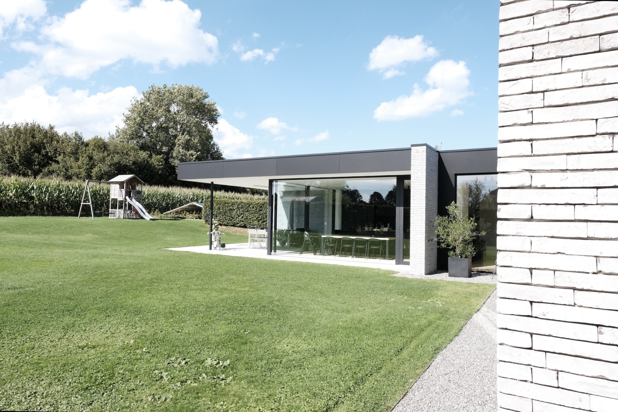 Le projet consiste en la construction d’une habitation quatre façades sur un terrain relativement plat, mais situé en léger surplomb par rapport à la rue, d’environ deux mètres.