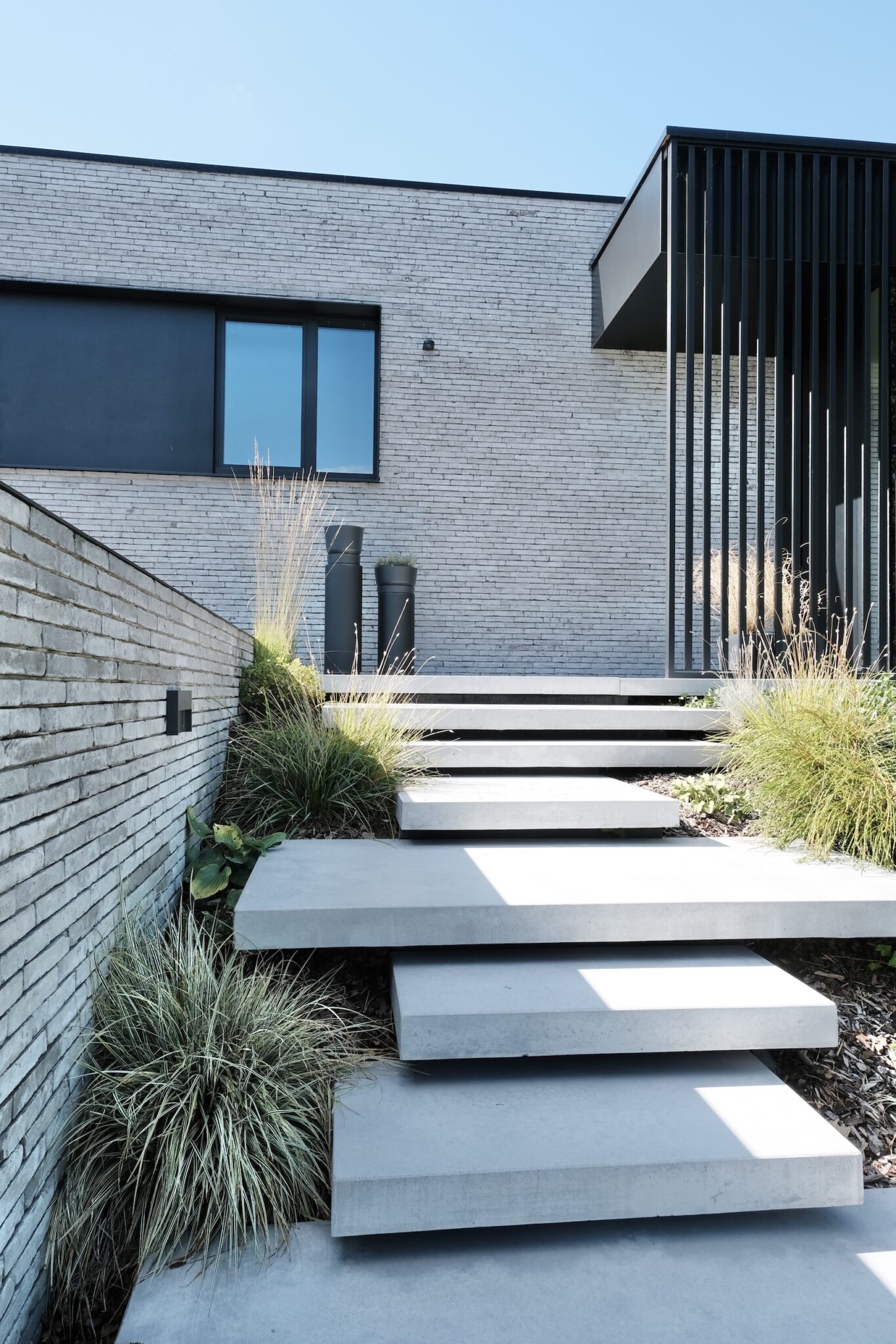 Les fonctions techniques, telles que le garage et les caves, sont implantées au niveau de la rue.
