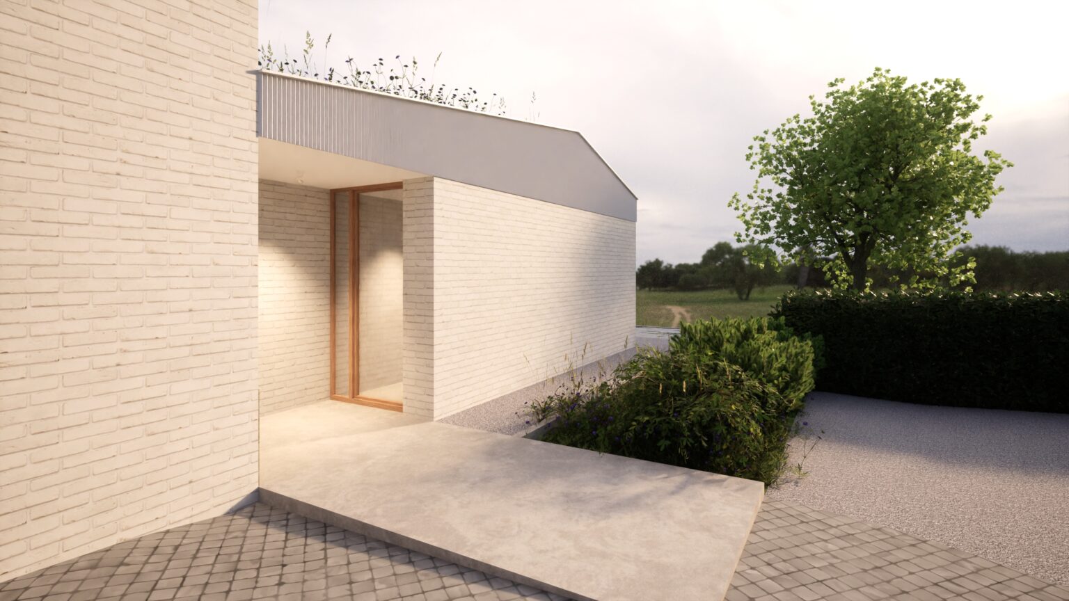 L’ajout de l’extension permet de repenser l’accès à l’habitation en y intégrant un nouveau hall d’entrée.