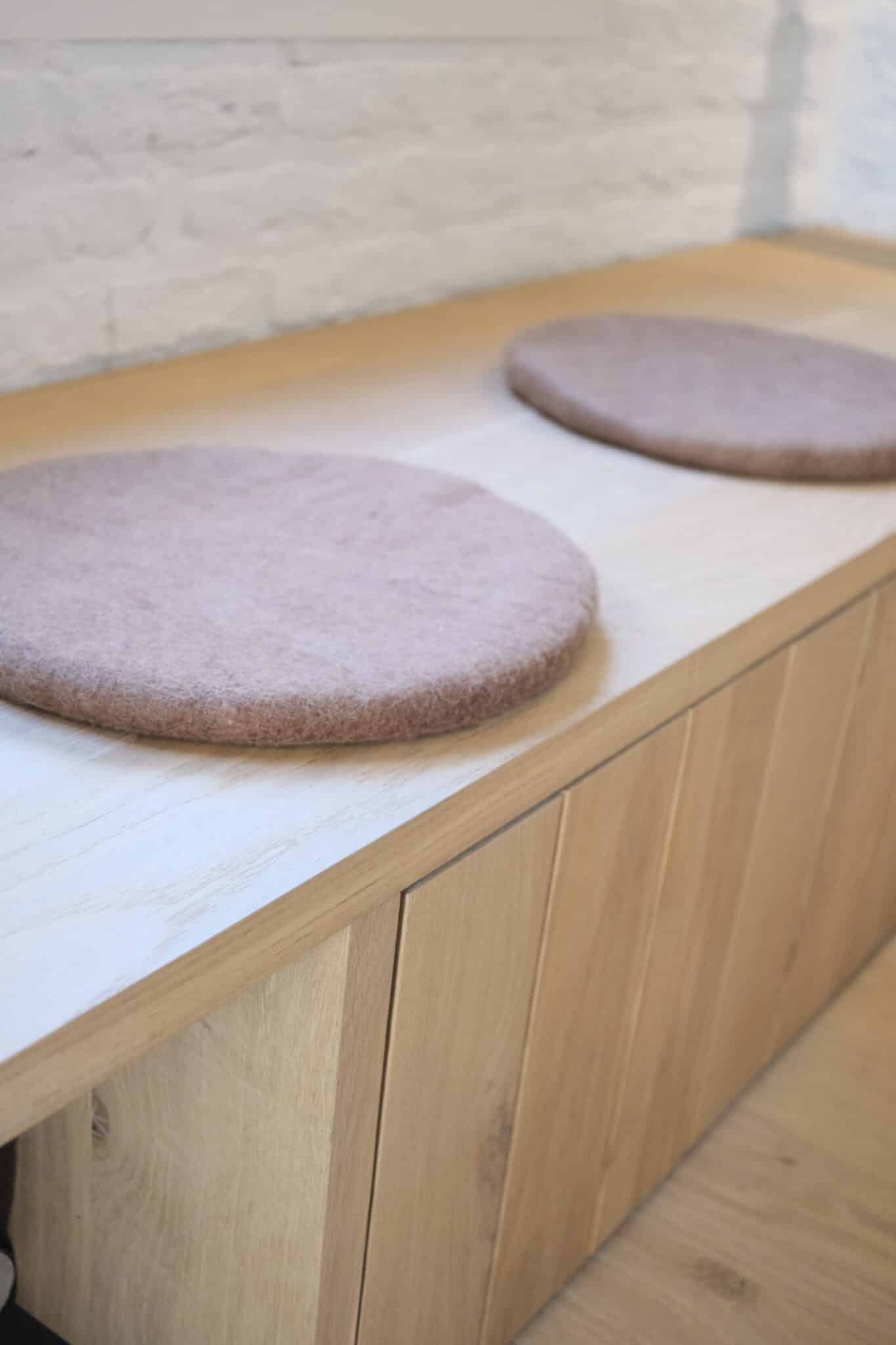 La cuisine a également bénéficié d’une rénovation complète : installation de meubles à tiroirs plus fonctionnels, ajout d’une banquette et d’une table plus compacte, mieux adaptée à la configuration de l’espace.