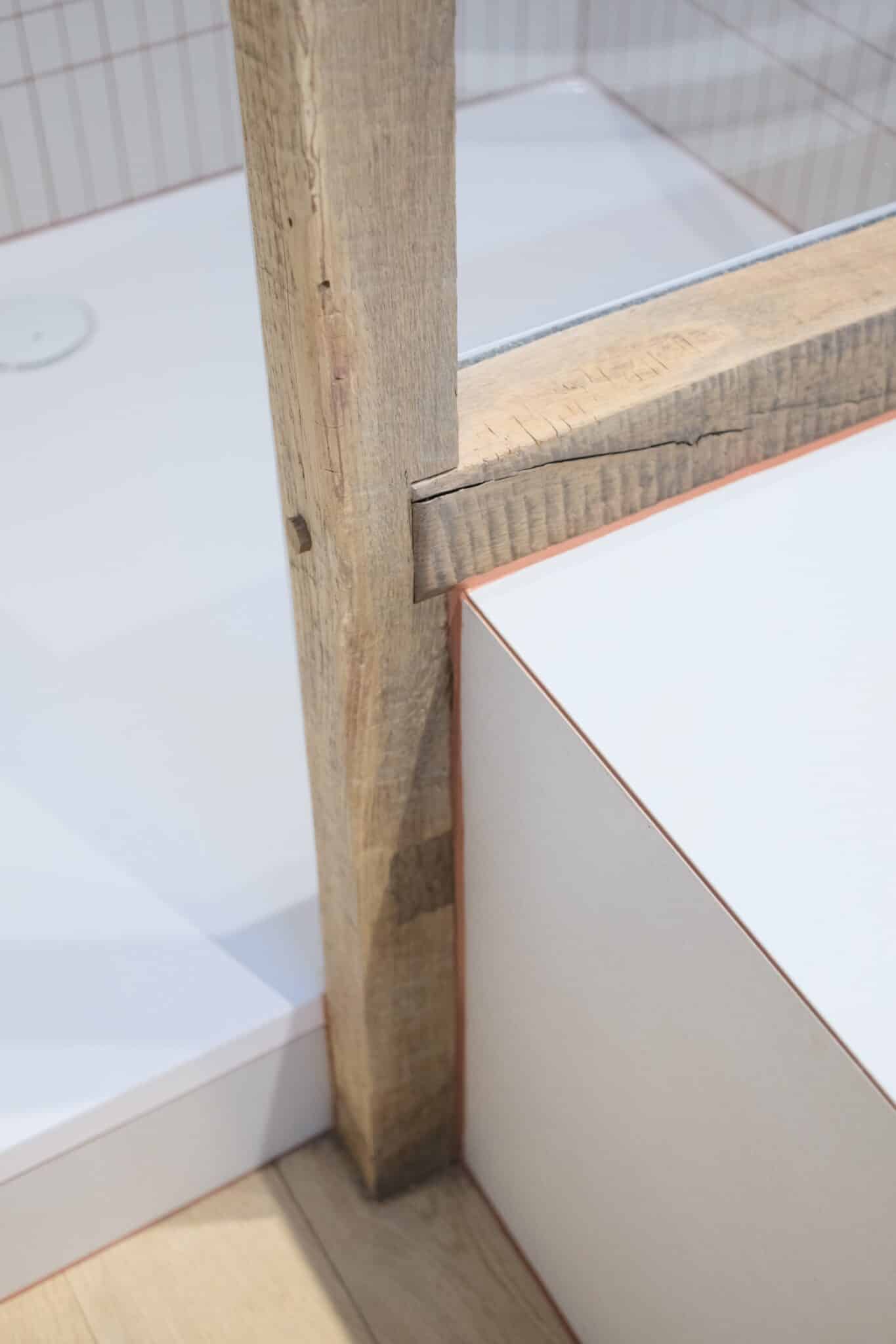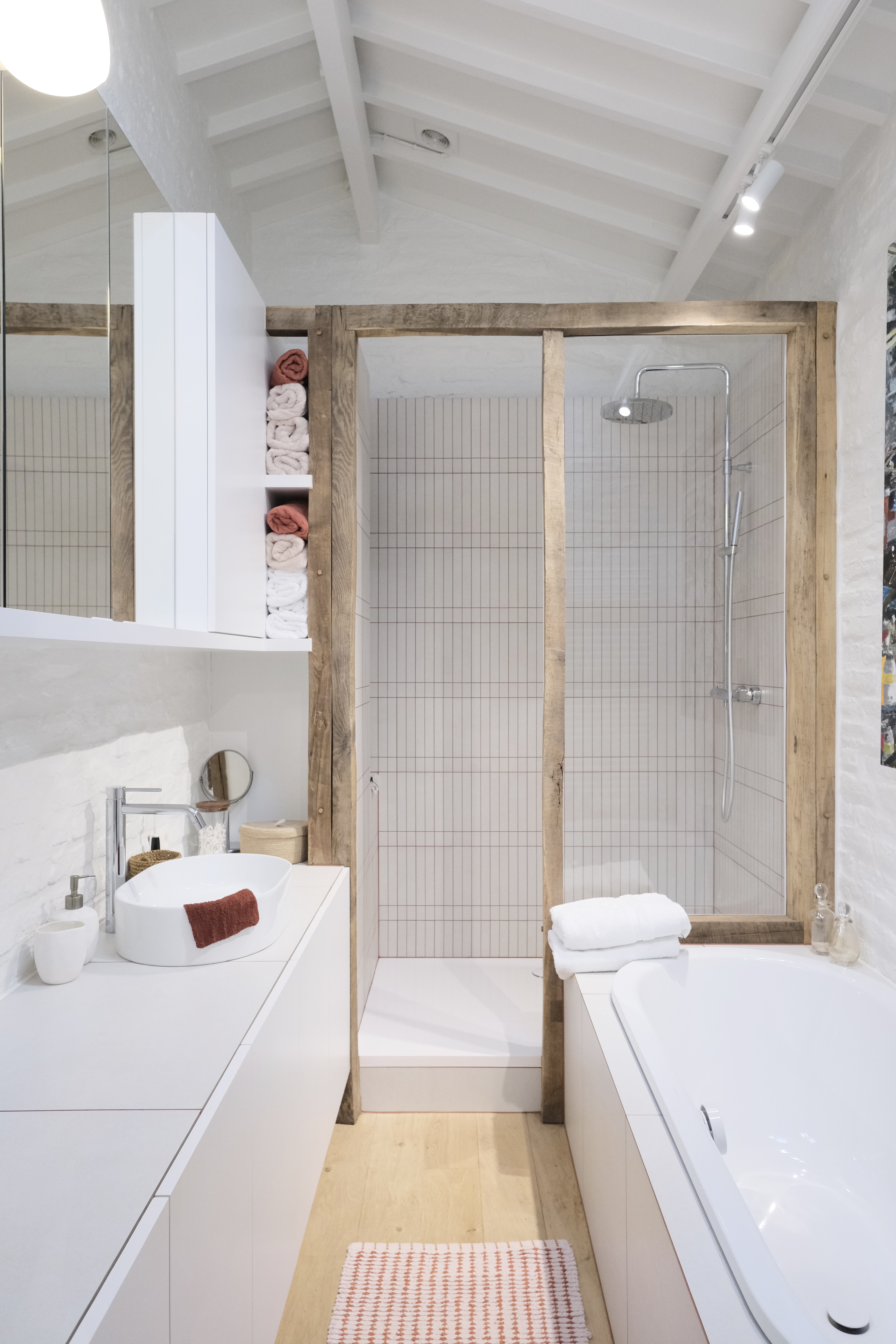 La salle de bain a été entièrement repensée et restructurée afin d’y intégrer une douche, optimisant ainsi l’usage et le confort du lieu.